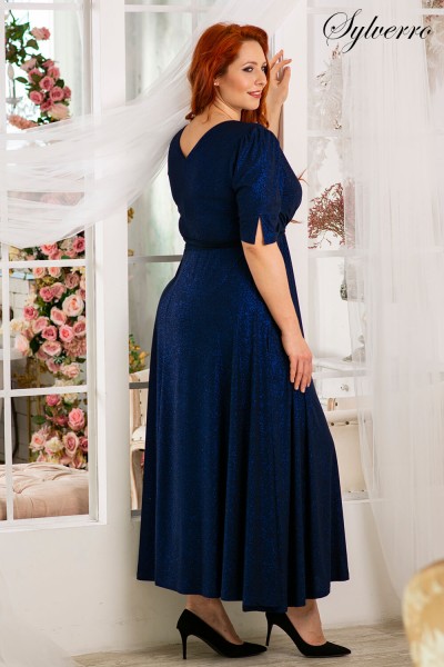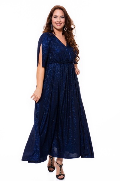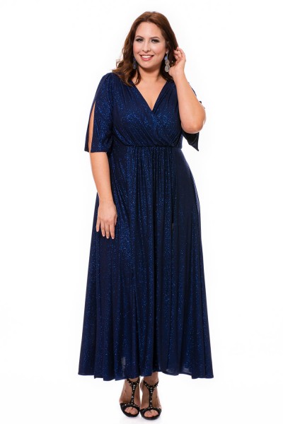 Maxi dress with a pretty opening on the left thigh, which is partially hidden by the wide skirt. The overlapping cut of the upper part gives a feminine cleavage and a fashionable look. The dress is placed under the bust with an elastic waist. A comfortable, elegant and youthful dress, which is highlighted even more by the beautiful material.