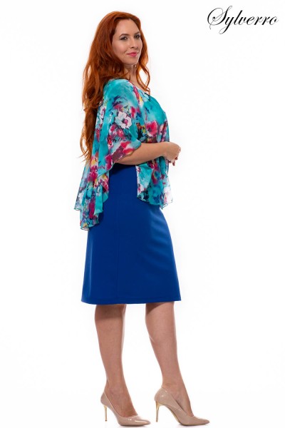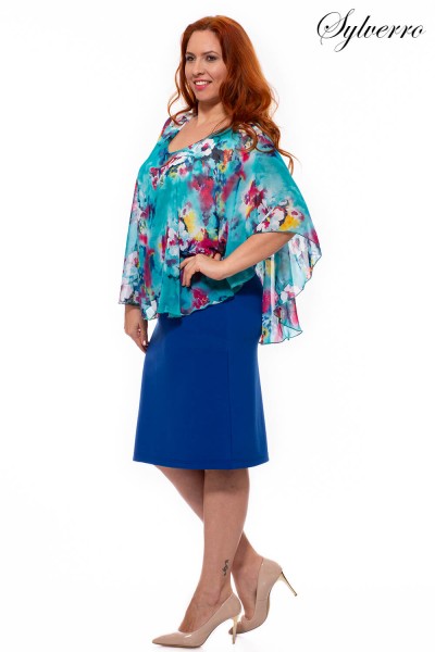 This style is very showy and really looks good on every figure. The top part is made of soft, flowing muslin that describes the entire circle, which makes the dress elegant. Elastic, comfortable to wear, a stunning dress. With a length below the knee, a beautiful neckline.
