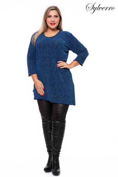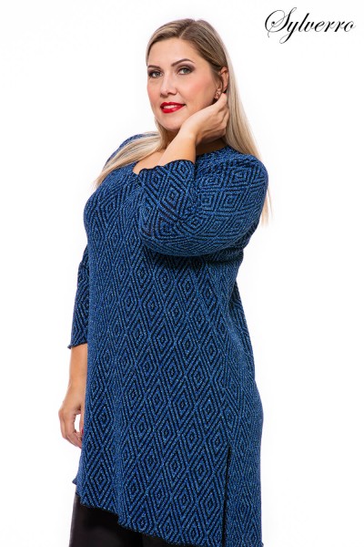 An elongated, slanted to one side, rhombus patterned lurex top. It stretches the figure and slims you! The slanted line is also reflected at the end of the sleeves. It can be worn not only for the holidays, but for any occasion, even to the theater.