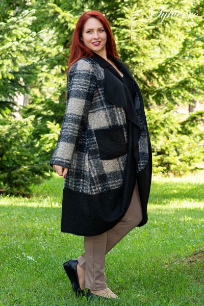 Soft, warm, washable, loose piece. Cheerful, light, fashionable, loose-fitting cardigan. With a pocket on the front, a large collar. Dimensions; length: 115 cm, folded in half at the chest: 70 cm, hips: 80 cm. Good for L-5XL, one-size-fits-all.