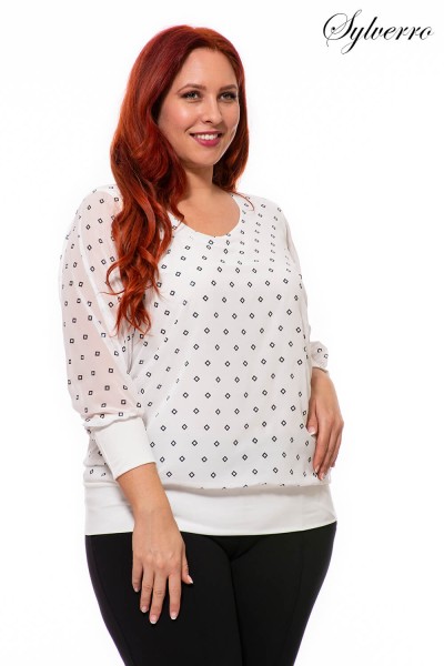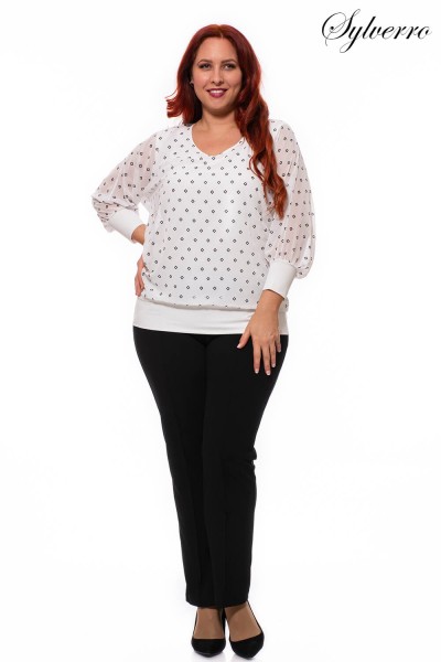 Elegant patterned muslin top with comfortable and flattering fit at the bottom and at the ends of the sleeves. The bottom is an elastic top, the top is made of a looser muslin layer. The beautiful “V” neckline elongates the figure. Comfortable and fashionable piece for occasions.