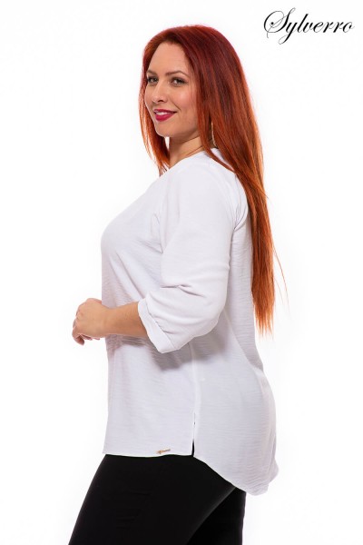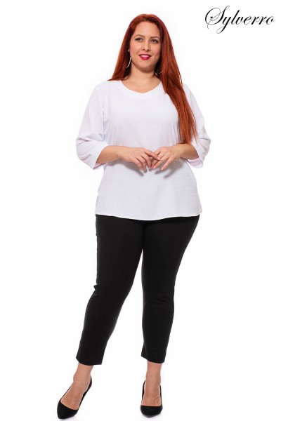 A pretty top with 3/4 sleeves, a strap at the end of the sleeves, and a loose line. The soft, yet durable material means it doesn't stick to the body. It doesn't wrinkle and is easy to care for even after washing. The "V" neckline elongates the figure. Discover the new hit pieces of the fall-winter season.