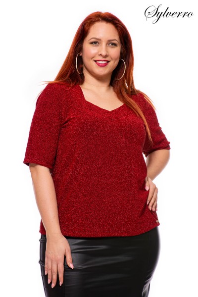 A casual, vibrantly shiny top that is comfortable to wear, non-stinging, and has a good fit. You can wear it for any occasion, from a corporate party to a dinner party to the theater. It looks good on any body type due to its nice curved cut and good fit. It also goes well with a skirt.