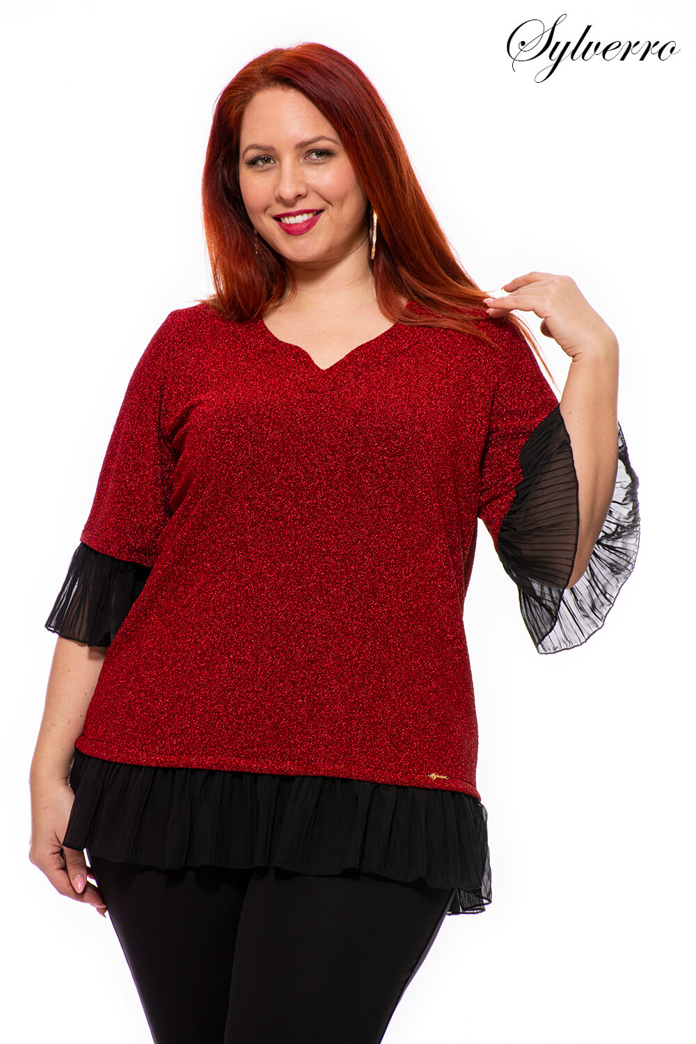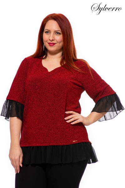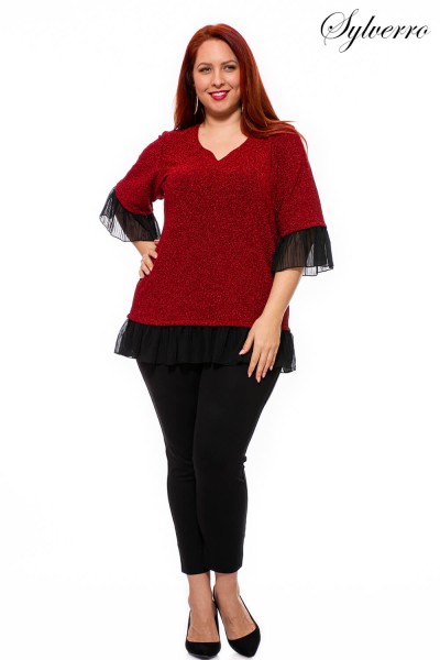A casual, vibrantly shiny top that is comfortable to wear, non-stinging, and has a good fit. You can wear it for any occasion, from a corporate party to a dinner party to the theater. It is made with pleated muslin decoration at the bottom and at the ends of the sleeves. A unique, sophisticated piece. It looks good on every figure due to its beautiful curved cut and good fit. It also goes well with a skirt.