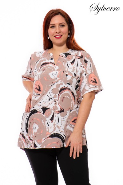 Pastel colors give a real spring and summer atmosphere, the material is pleasant, elastic, and falls softly. Short-sleeved, open-sided, elongated top. With an opening at the front and decorated with fashionable pocket flaps in the front cut.