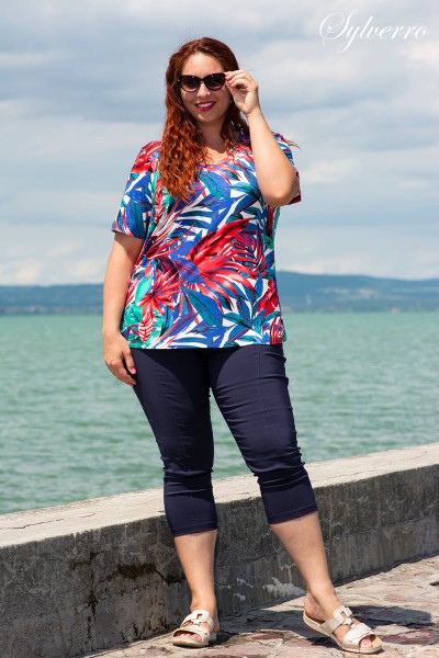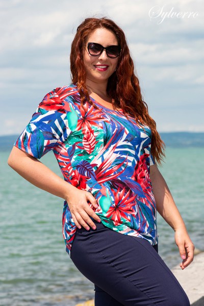 Viscose material, short sleeves top. A lovely, comfortable and pretty piece. It looks good on every figure, choose the one you like. Its cut stretches the figure, with dropped shoulders, and a hip-covering length!