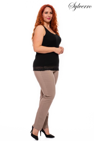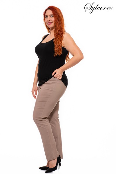 A very cosy Pants of strech fabric with elastic waistband. Long cut,tightens towards the bottom, cut close to the figure, high rise withsupportive concealed elastic waistband.In different colors available.