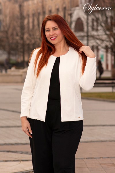 A blazer that can be combined well, for any occasion, or even with jeans. Long sleeves, shaped with cut lines, no closure, round neck, good hold, non-wrinkle material. The beautiful ecru-colored material is made even more fashionable by its letter-shaped pattern!