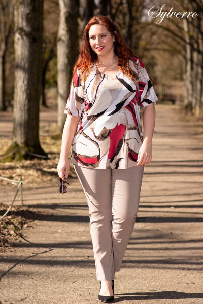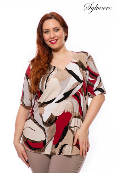 Patterned, short-sleeved top reaching to the elbow – comfortable and stylish
