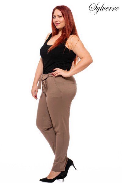 Elastic, nice surface, medium-thick punto pants, which are pleasant to wear for autumn and winter. Narrowed bottom, but does not stick to the leg completely. With sporty pockets, drawstrings and a removable belt. The waist is wide elastic, which is comfortable, but also pretty. Since it is very elastic, it cannot be dried in a dryer and can only be washed at a low temperature. Its length is approx. 5 cm. It may shrink after the first wash, so only then cut the length if necessary. A lovely piece because it does not require ironing.